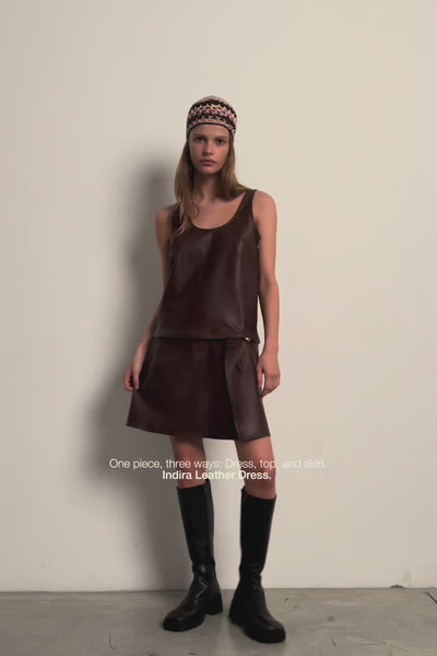 Vestido convertible en dos piezas, top y falda. Tiene una cremallera en la cadera que une ambas partes. En las imágenes se puede apreciar junto y por separado.